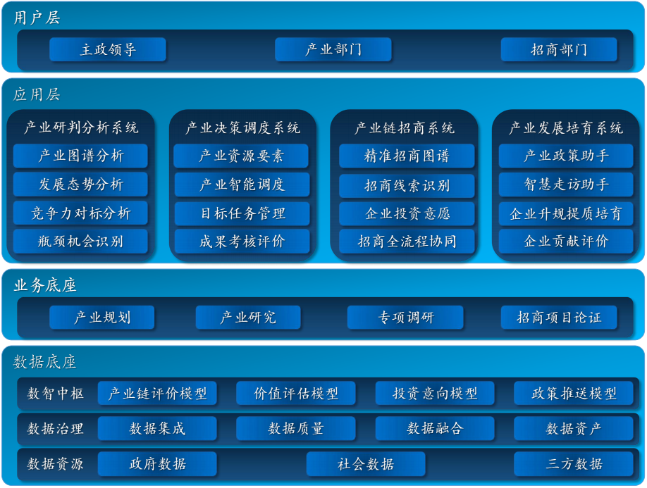 精準(zhǔn)招引、體系評估、統(tǒng)籌流程。從產(chǎn)業(yè)鏈視角出發(fā)結(jié)合產(chǎn)業(yè)模型,以補鏈和延鏈為核心,通過強大的數(shù)據(jù)處理能力與業(yè)務(wù)研究能力,對全國范圍內(nèi)的企業(yè)、項目、人才進(jìn)行識別與評估,為招商部門明確招引產(chǎn)業(yè)環(huán)節(jié),招引企業(yè)清單。幫助招商部門確定招什么產(chǎn)業(yè)環(huán)節(jié)、招那些企業(yè)、怎么招的問題,并打通招前、招中、招后環(huán)節(jié),全面深入賦能產(chǎn)業(yè)招商工作。