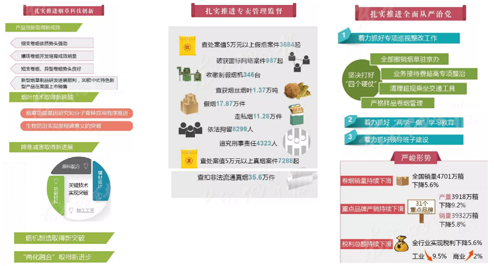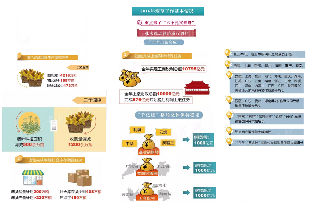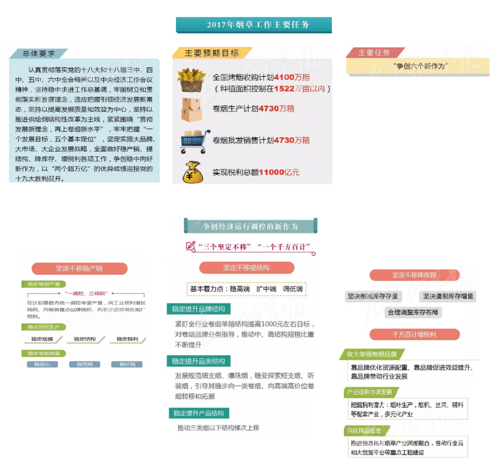 2017年全國煙草工作會(huì)議在北京召開,國家局局長(zhǎng)凌成興在會(huì)上作了題為《堅(jiān)持穩(wěn)中求進(jìn)總基調(diào) 爭(zhēng)創(chuàng)穩(wěn)中向好新作為以“兩個(gè)超萬億”優(yōu)異成績(jī)迎接黨的十九大勝利召開》的報(bào)告。
