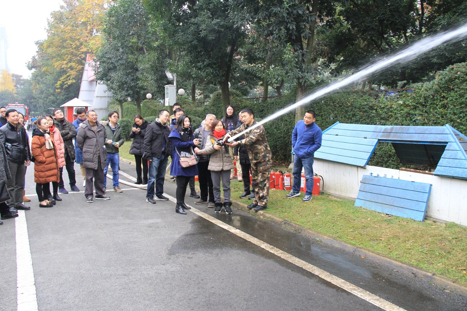 在培訓(xùn)中,參訓(xùn)人員學(xué)習(xí)了消防安全隱患清除、初期火災(zāi)撲救、滅火器正確使用方法等知識(shí),并參觀了消防車、消防訓(xùn)練塔、應(yīng)急指揮車等設(shè)備及場(chǎng)地。隨后,參訓(xùn)人員在消防戰(zhàn)士的指揮下進(jìn)行了運(yùn)用泡沫滅火器、消防水槍滅火、高層逃生等實(shí)操演練,消防技能、突發(fā)應(yīng)急能力、火災(zāi)中的逃生技能等均得到了有效提升。