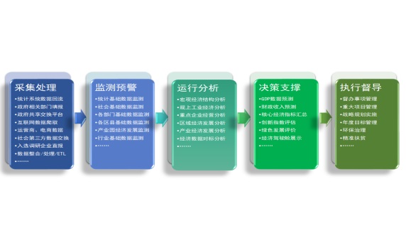 面向地方政府經(jīng)濟(jì)管理工作的現(xiàn)實(shí)需要,實(shí)現(xiàn)了政府各部門經(jīng)濟(jì)數(shù)據(jù)的全生命周期管理。整合政府各經(jīng)濟(jì)部門數(shù)據(jù)資源,并對實(shí)時(shí)、交互、離散化和非結(jié)構(gòu)的海量數(shù)據(jù)進(jìn)行融合處理,建立可持續(xù)優(yōu)化的各類監(jiān)測分析模型、涵蓋“企業(yè)微觀經(jīng)濟(jì)”、“產(chǎn)業(yè)中觀經(jīng)濟(jì)”和“空間中觀經(jīng)濟(jì)”以及“區(qū)域宏觀經(jīng)濟(jì)”多個(gè)層面,覆蓋政府經(jīng)濟(jì)管理過程中數(shù)據(jù)采集、監(jiān)測預(yù)警、運(yùn)行分析、決策支撐和執(zhí)行督導(dǎo)多個(gè)應(yīng)用場景,實(shí)現(xiàn)對地方高質(zhì)量發(fā)展、產(chǎn)業(yè)布局優(yōu)化的信息支撐價(jià)值,進(jìn)而形成引領(lǐng)地方經(jīng)濟(jì)發(fā)展的新引擎。